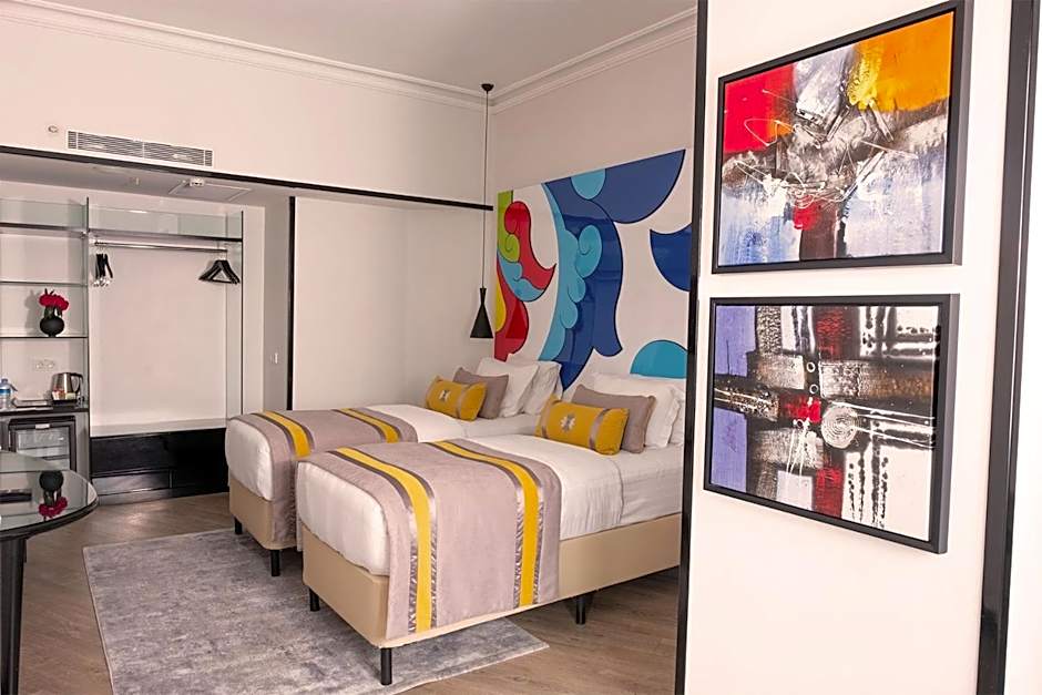 This quadruple room's standout feature is the pool with a view. Offering free toiletries, this quadruple room includes a private bathroom with a shower, a hairdryer and slippers. The air-conditioned quadruple room offers a flat-screen TV, a wardrobe, an electric kettle, heating as well as city views. The unit has 4 beds.
